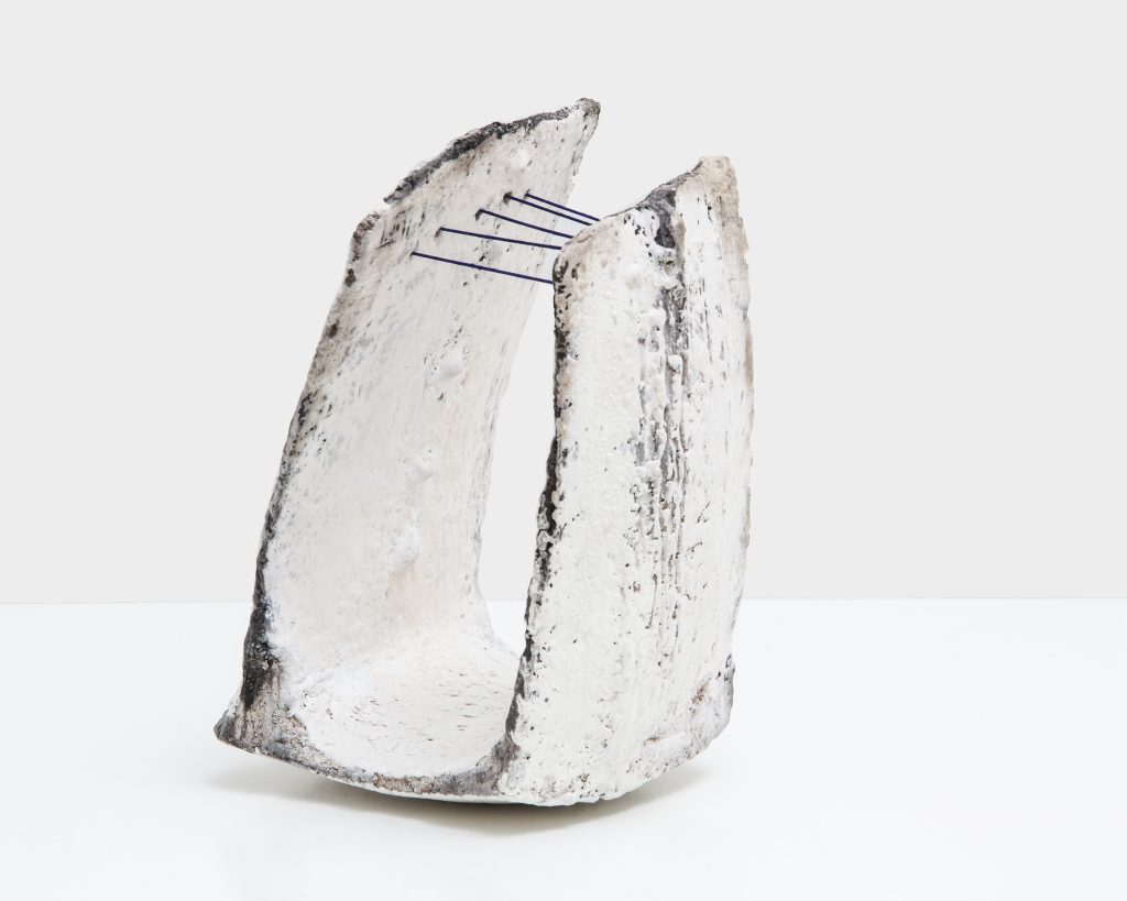 “ Gevoelig voor de breekbaarheid van de natuur en de mens, maar ook voor hun ondoorgrondelijke kracht en dit weergeven in zwijgend mineraal aardewerk.